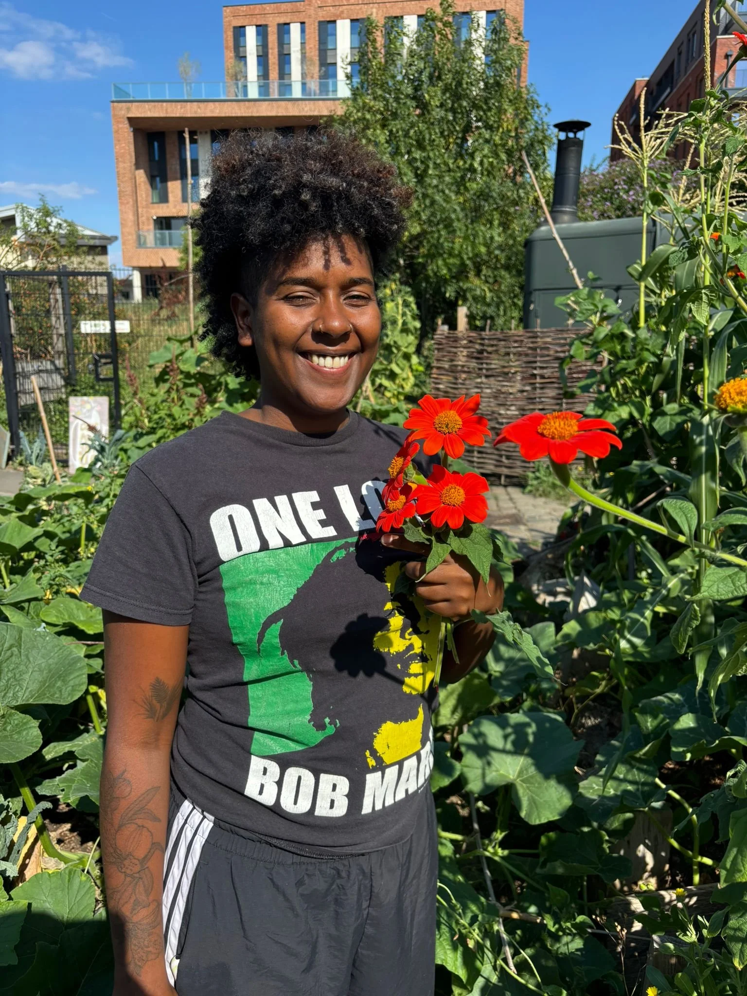 Sam is a Black and mixed (Black Jamaican, Sri Lankan) writer, grower and organiser. They are interested in liberation through healing and building resilient communities, and how access to land and nature are key to this. Sam often gives presentations, talks on podcasts and panels, facilitates workshops and writes or contributes to articles. They are passionate about building resilient and transformative systems, centring care and reparative justice in their work.